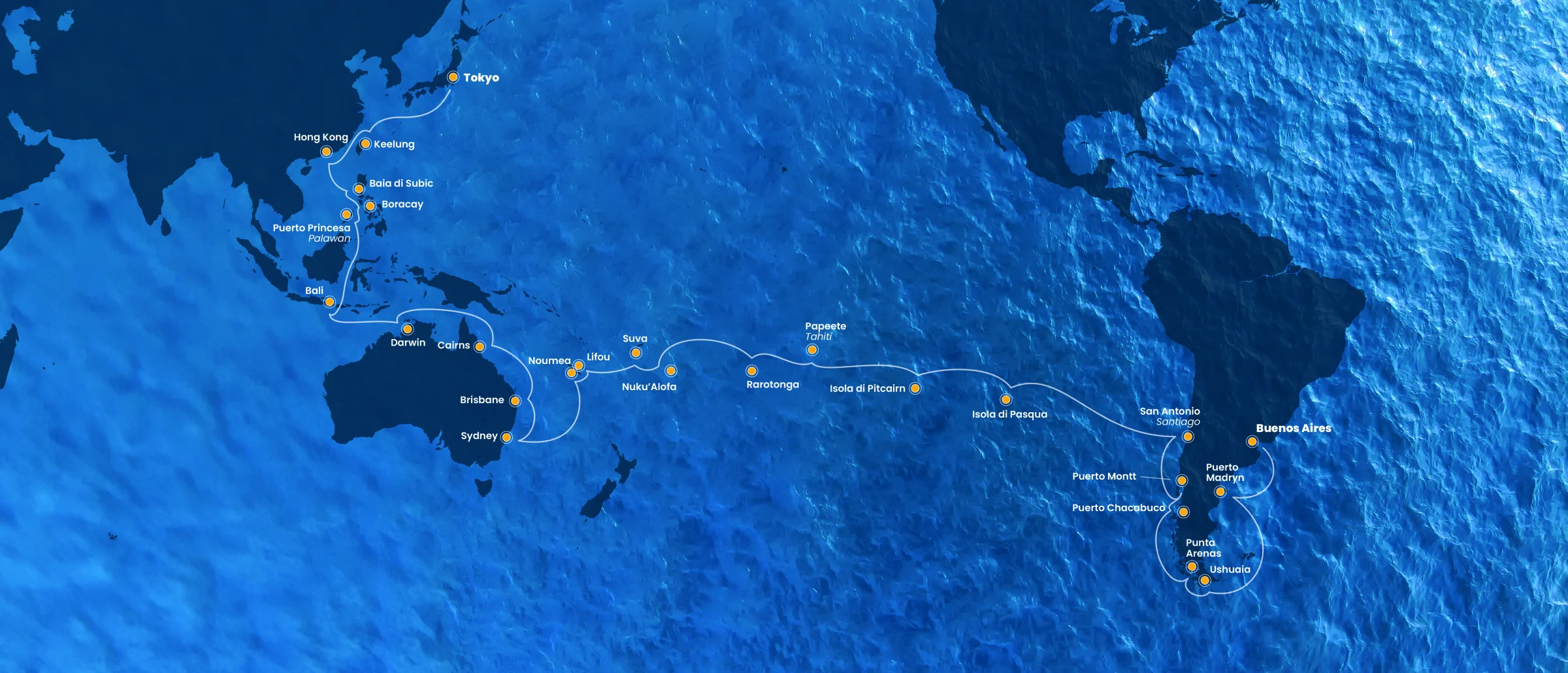 Obeplujte celý svět za sto dní! Na této jedinečné cestě neztrácíte čas zdlouhavými pobyty na letištích a už vůbec nepotřebujete neustále balit a vybalovat! Luxusní plovoucí hotel zakotví v sedmi desítkách přístavů, protáhne se notoricky známými průplavy a bezpečně propluje vlnami mnoha moří a několika oceánů. Trasy bývají nejrůznější, avšak můžete počítat s tím, že navštívíte každý kontinent. Někdy se pluje Panamským kanálem, jindy se volí trasa kolem Hornova mysu. K největším tahákům patří Japonsko, Austrálie a Nový Zéland či jedinečné exotické ostrovy v Tichomoří.