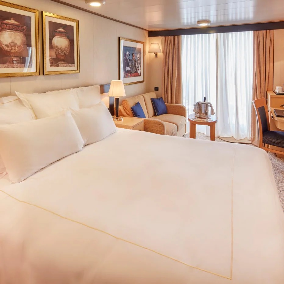 Vaše kajuta je místem, kde se budete cítit pohodlně. Kdykoli během dne se můžete vrátit do svého nádherného ubytování, usadit se a natáhnout si nohy. Ať už si chcete vychutnat čtení, odpočinout si v posteli u filmu nebo připravit koktejl ve svém osobním baru v Queens Grill Suite, vaše soukromá adresa na moři čeká na vás.