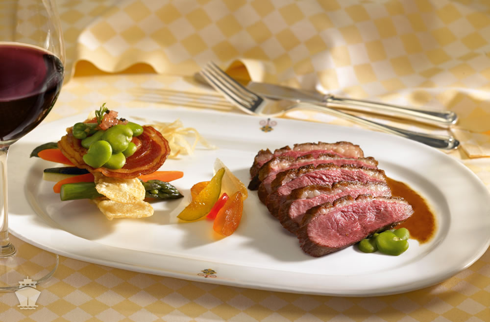 Stravování ve speciálních restauracích a zařízeních je za příplatek: například steakhouse Crown Grill, italská trattorie Sabatini’s, gourmetské restaurace The Chef’s Table nebo Chef’s Table Lumiere, italská zmrzlina Gelato aj.