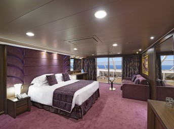 Kajuta s balkónem: 17 - 26 m², kajuta s manželskou postelí (na požádání 2 oddělené postele) a rozkládací pohovka. Klimatizace, koupelna se sprchou nebo vanou a WC, toaletní stolek, prostorná skříň, interaktivní TV, telefon, sejf, vysoušeč vlasů. Balkony se stolkem a židlemi. Některé kajuty mají omezený výhled.