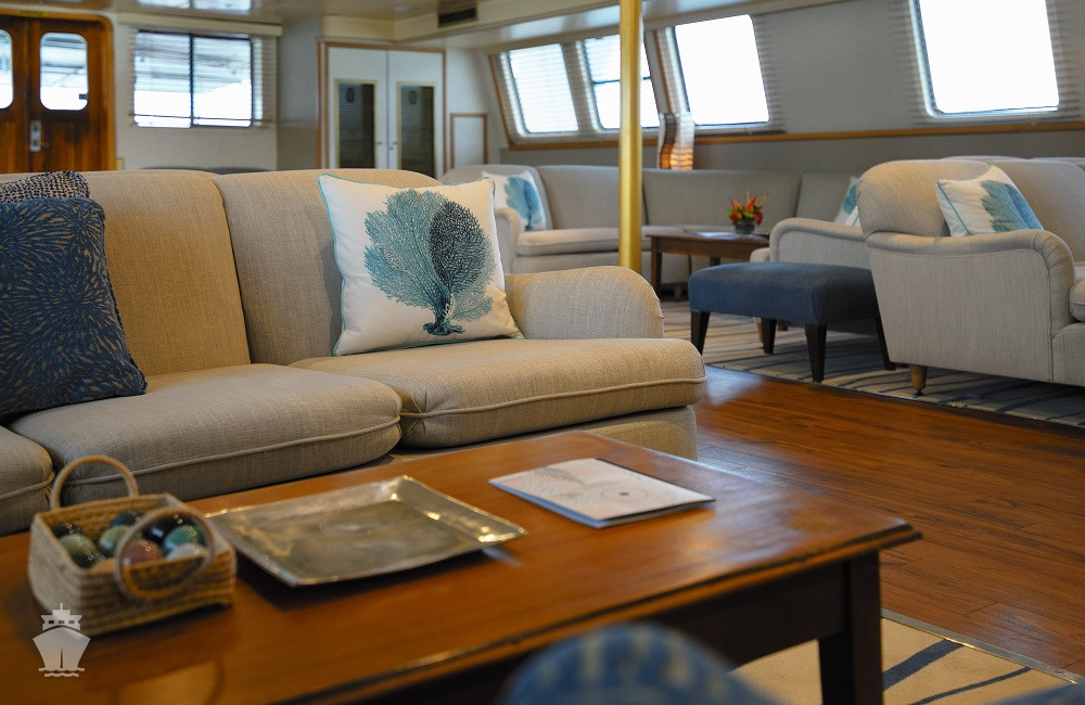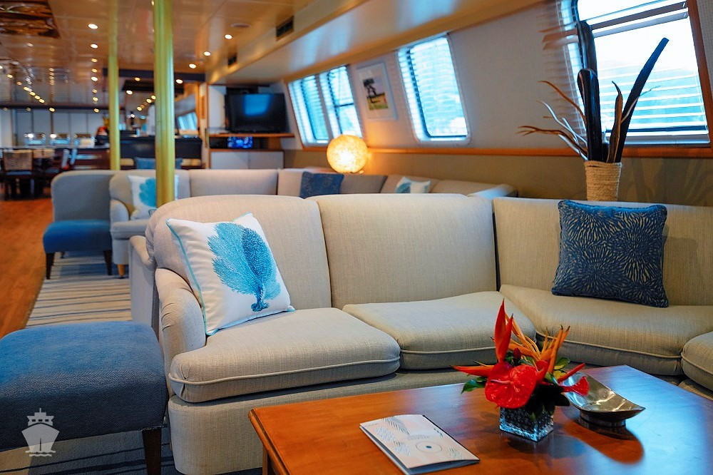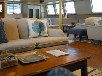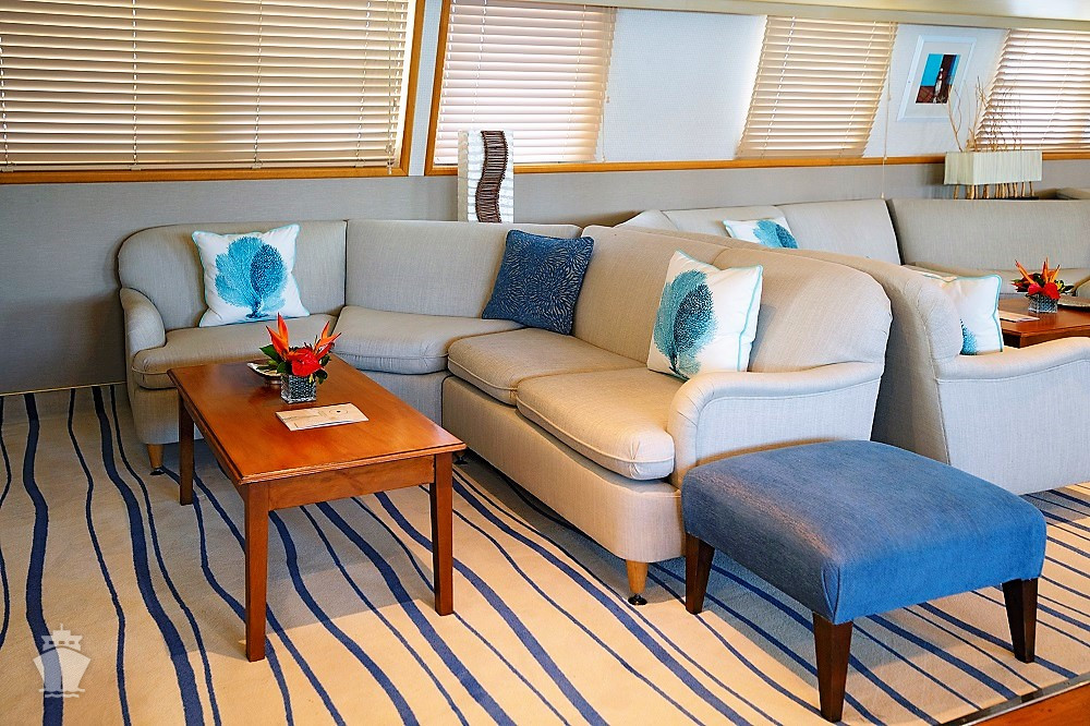 Na hlavní palubě se nachází komfortní salón, vybavený pohodlnými křesly a elegantní bar. Vedle salonu najdete knihovnu s výběrem knih v různých jazycích a k dispozici jsou i různé společenské hry.