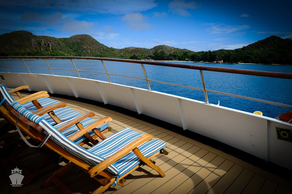 Nejvyšší paluba, Sun Deck, má rozlohu 240 m2. Vybavena lehátky a slunečníky, je ideální sluneční terasou na opalování. A v noci je to perfektní místo na pozorování noční oblohy.