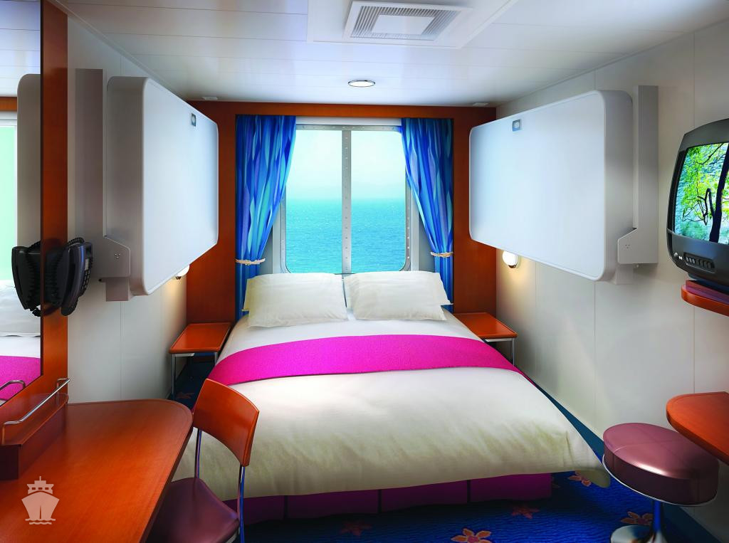 Kajuta s oknem: varianty s malým oknem, s omezeným výhledem, s větším oknem; možnost 1 - 2 přistýlek