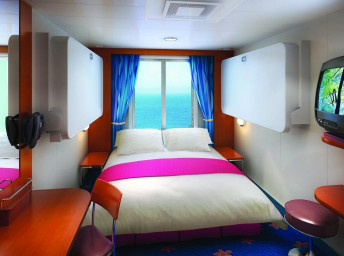 koupelna se sprchou a WC, 2 lůžka, v některých kajutách možnost přistýlek, toaletní stolek, úložné prostory, interaktivní TV, sejf, telefon, vysoušeč vlasů.