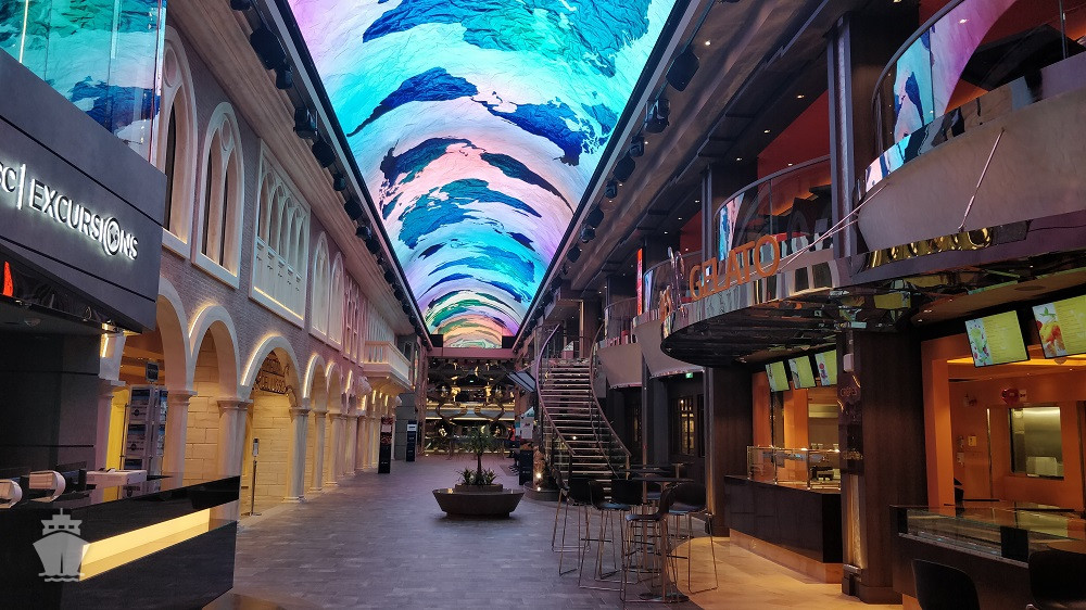 • promenáda s restauracemi, bary a duty-free obchody, zastřešená 480 m² LED "digitální oblohou" s vizuálními show