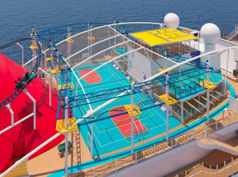 6. Ultimate Playground na 18. až 20. palubě není jen pro děti! Vzrušující BOLT Ultimate Sea Coaster, s délkou 243 m, s rychlostí přes 60 km / hod a ve výšce 57 m nad hladinou moře je první horskou dráhou na moři vůbec! Kromě toho zde najdete vodní park WATERWORKS s tobogány; 182 metrovou lanovou dráhu a sportovní zónu SportSquare s minigolfem, ping-pong a poly-pong stoly, twisterem, skybiliardami, basketbalovým hřištěm.