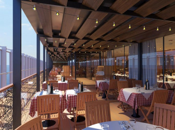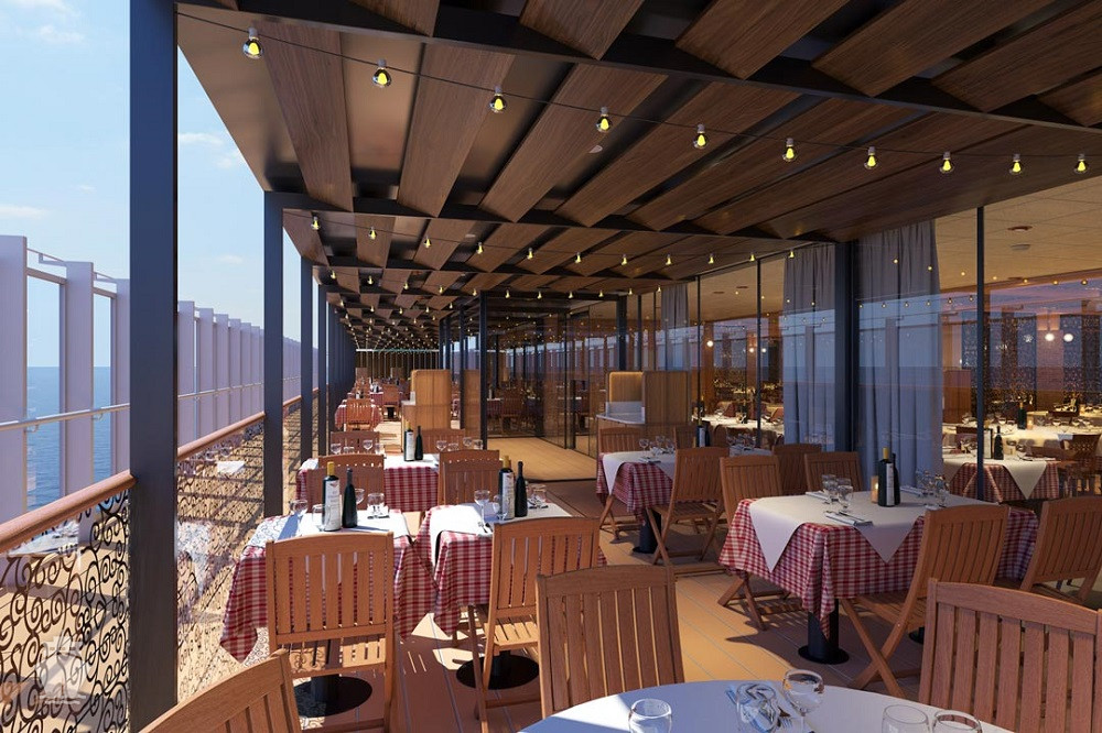 4. La Piazza: v italských barvách: Cucina del Capitano nabízí tradiční speciality; v Pizzeria del Capitano se podává pizza 24 hodin denně a ve středomořském baru mají autentické kávové nápoje a klasické italské koktejly.