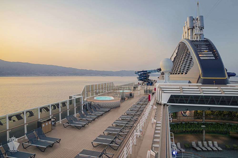 - bazén The Infinity Aft Pool s výhledem na oceán a se zapuštěnými lehátky