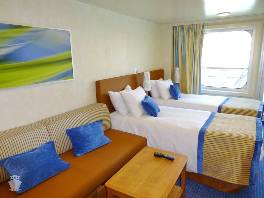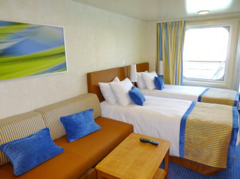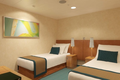 Základní vybavení všech kajut: koupelna se sprchou a WC, TV s plochou obrazovkou, telefon, elektrická zásuvka 110 AC, regulovatelná klimatizace, postele Carnival Comfort, vysoušeč vlasů, trezor.