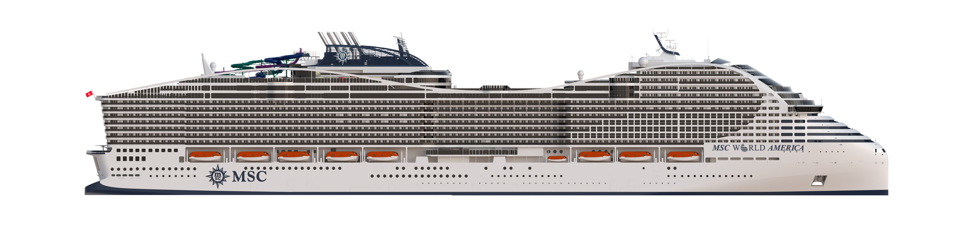 Výletní loď MSC World America je navržena především pro plavby v Americe a pyšnit se bude novými restauracemi, bary, veřejnými prostory a zážitky navrženými tak, aby vytvořily skutečně nezapomenutelný zážitek z plavby. Na palubě se setkají různé kultury z celého světa, protože elegantní evropský design se snoubí s americkým komfortem.