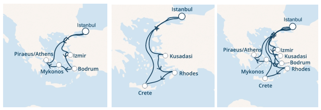 Okružní plavby s návštevou Turecka a Řecka se budou střídat v týdenních intervalech, přičemž bude možné je nakombinovat do jedné 14denní plavby.