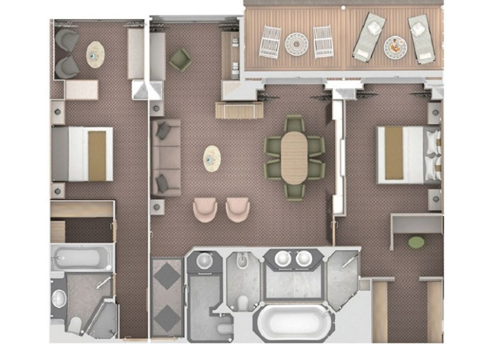 | S2 - Silver Suite 2 104 m² (včetně balkona). 2 ložnice, 2 koupelny, obývací a jídelní část. | 1 939 053 Kč 969 527 Kč za osobu |