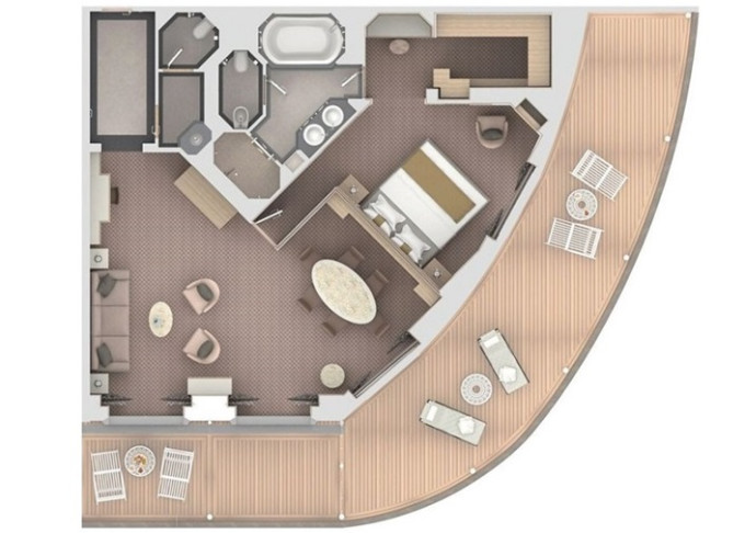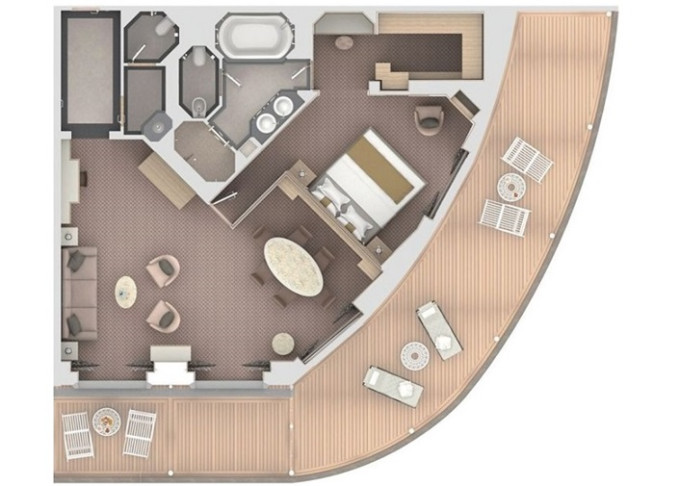 | SV - Superior Veranda Suite 36 m² / balkon 6 m². Vyšší paluby. Ložnice s obývací částí. | 654 680 Kč 327 340 Kč za osobu | ||