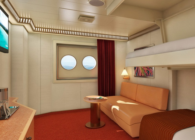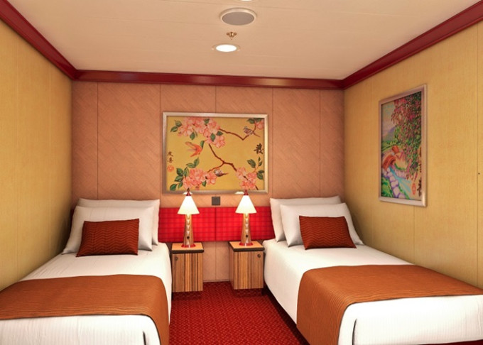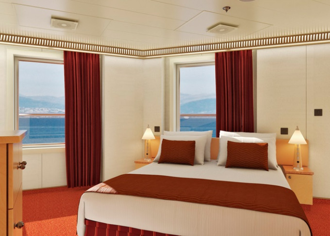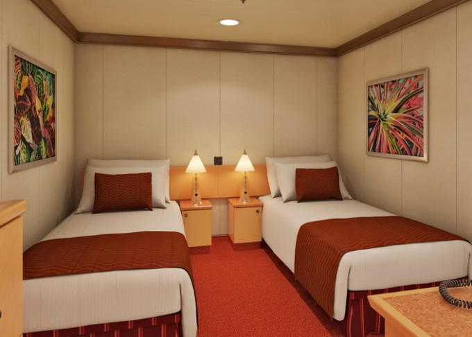 Standardní vybavení kajut: koupelna se sprchou a WC, 2 lůžka, v některých kajutách přistýlky ve formě sklopných lůžek či rozkládacího sofa, dostatek úložných prostor, fén, zásuvky, TV, telefon.