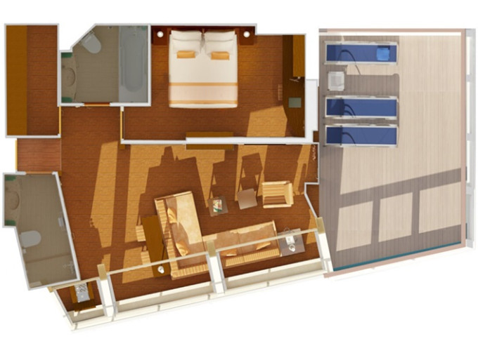 | CS - Captain's Suite 50 m² / balkon 24 m². Výhody Suite. Max 5 osob. | 96 853 Kč 48 426 Kč za osobu |