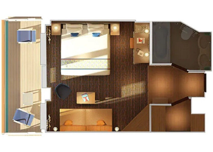 | HI - Kajuta Havana s väčším balkonem Aft Extended 17 m² / balkon 7 m². Vzadu. Tropický styl, vstup do exkluzivní zóny Havana. | 59 021 Kč 29 511 Kč za osobu | ||