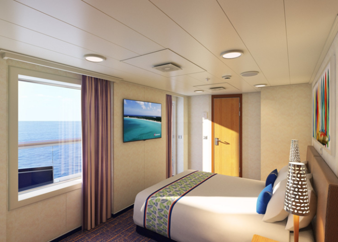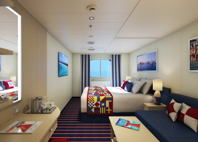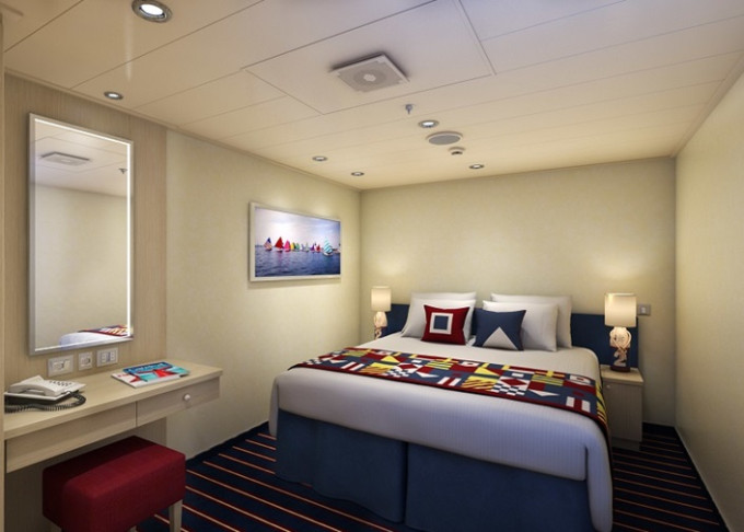 Vybavení ve všech kajutách: koupelna se sprchou, postele a dostatek úložných prostor, TV, telefon, fén, sejf, minibar, individuálně nastavitelná klimatizace, plážové osušky k použití během plavby.