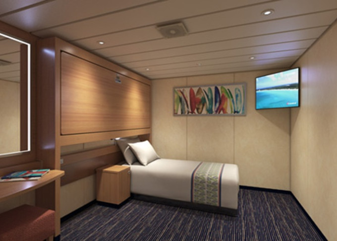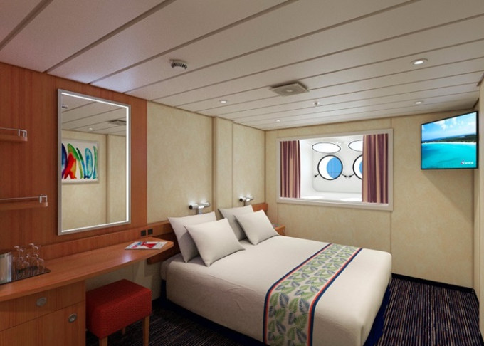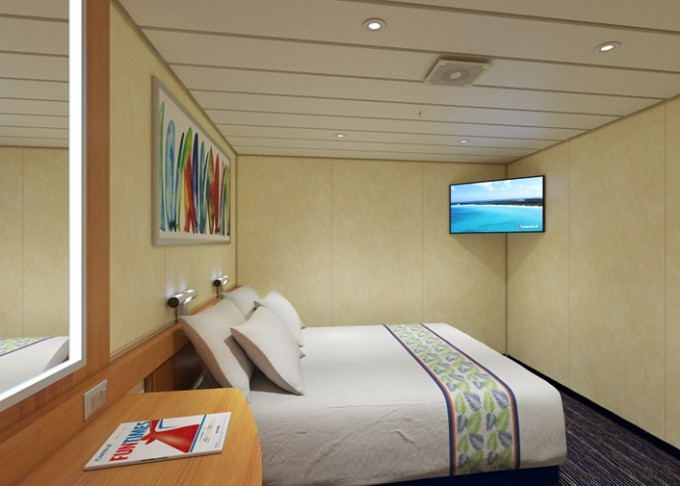 Základní vybavení všech kabin: koupelna se sprchou a WC, TV s plochou obrazovkou, telefon, elektrická zásuvka 110 AC, regulovatelná klimatizace, postele Carnival Comfort, vysoušeč vlasů, bezpečnostní schránka, mini lednice.