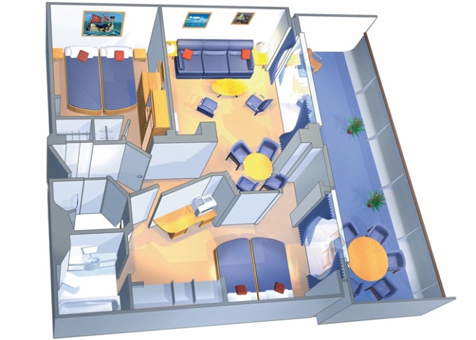 | GT - Grand Suite s balkonem / 2 ložnice 57 m² / balkon s vířivkou 22 m². Výhody Royal Suite Class. 8/9. paluba. Max 8 osob. | 307 050 Kč 76 763 Kč za osobu | ||
