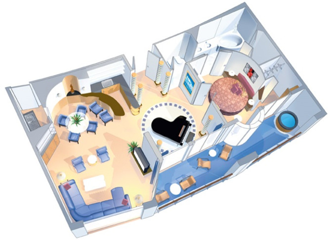 | OS - Owner’s Suite s balkonem 47 m² / balkon s vířivkou 6 m². Výhody Royal Suite Class. 10. paluba. Max 4 osoby. | 217 994 Kč 72 665 Kč za osobu | ||