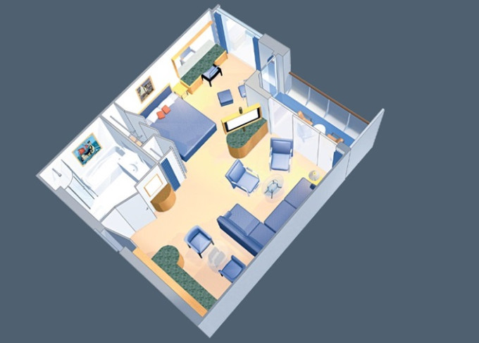 | VP - Ocean View Panoramic Suite (bez balkonu) 37 m². Panoramatické neotevíratelné okna. Výhody Royal Suite Class. 12. paluba. Max 6 osob. | 217 394 Kč 72 465 Kč za osobu |
