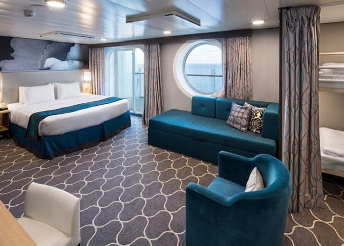 | J3 - Junior Suite s balkonem 26,5 m² / balkon 7,5 m². Výhody Royal Suite Class. 6/7/8/14. paluba. Max 5 osob. | 151 101 Kč 151 101 Kč za osobu | ||