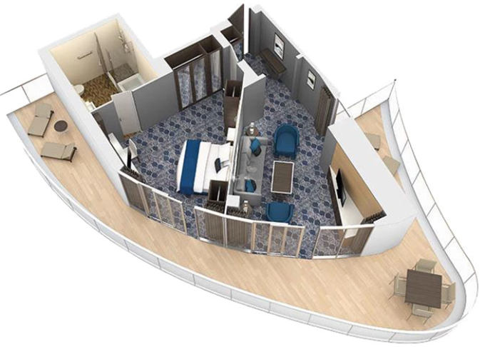 | OP - Owner's Panoramic Suite 100 m² / balkon s vířivkou 15 m². Výhody Royal Suite Class. 17. paluba. Max 4 osoby. | 657 404 Kč 657 404 Kč za osobu | ||