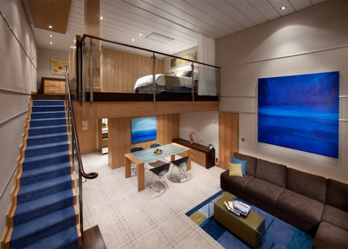 | L1 - Crown Loft Suite s balkonem 50 m² / balkon 10 m². 2-podlažní apartmán. Výhody Royal Suite Class. 17. paluba. Max 4 osoby. | 289 084 Kč 289 084 Kč za osobu | ||