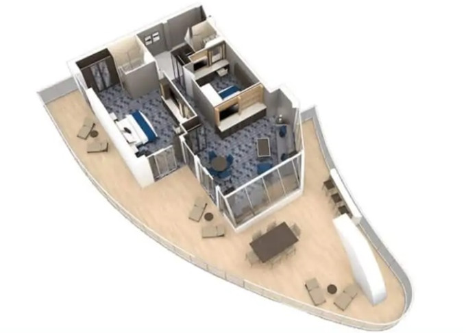 | A1 - Suite AquaTheater Spacious / 2 ložnice 76 m² / balkon 72 m². Výhody Royal Suite Class. 8. paluba. Max 8 osob. | 524 369 Kč 174 790 Kč za osobu |