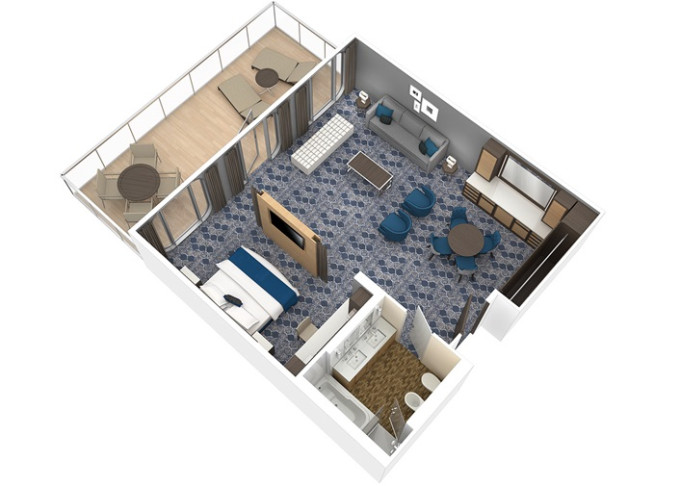 | J4 - Junior Suite s balkonem 27 m² / balkon 7 m². Výhody Royal Suite Class. 7/9/10/11/12/14. paluba. Max 5 osob. | 199 653 Kč 199 653 Kč za osobu | ||