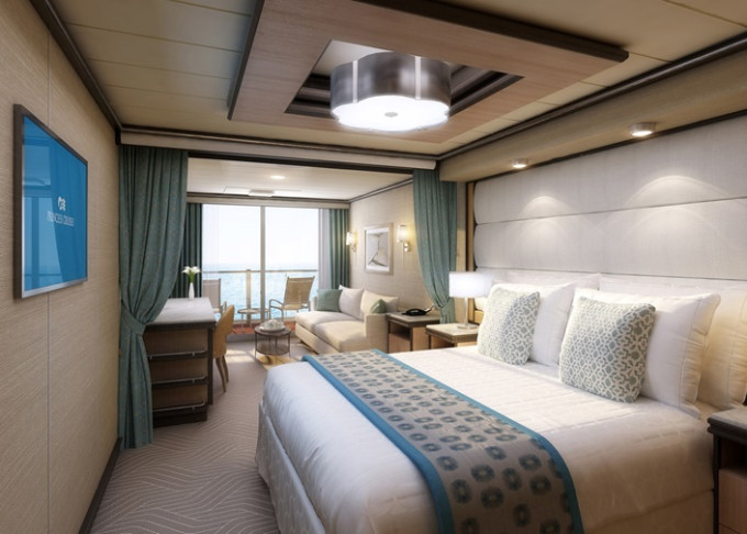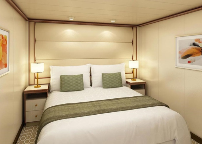 Standardní vybavení kajut: koupelna se sprchou a toaletou, 2 lůžka s možností konfigurace, úložné prostory, minibar, fén, TV, trezor. Balkony je vybaven malým stolkem a 2 židlemi či lehátky.