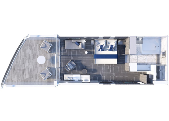| EV - Edge Villa s balkonem 69 m² + terasa s vířivkou 20 m². 2podlažní apartmán. Max 4 osoby. 15/16. paluba. Výhody Suite. | 497 757 Kč 124 439 Kč za osobu | ||