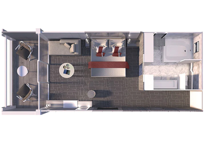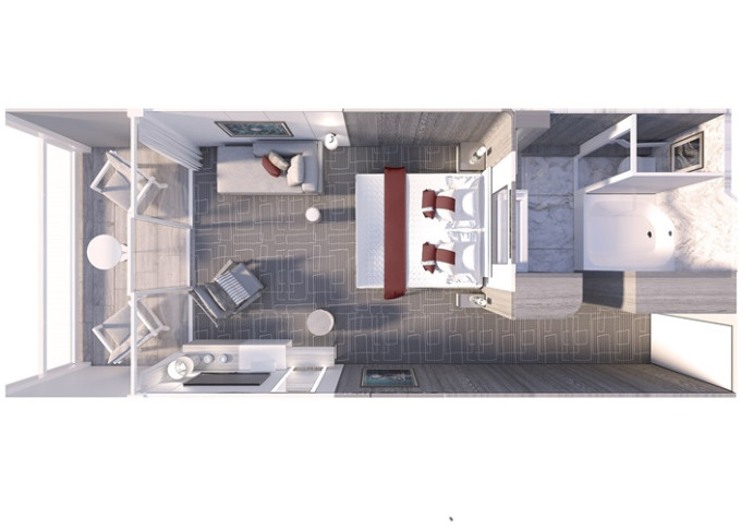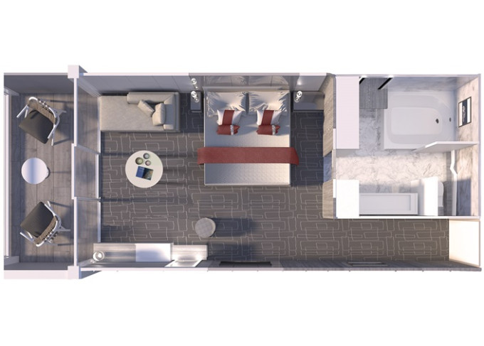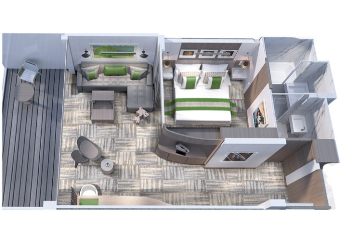 | S1 - Sky Suite 30 m² + balkon 7 m². 7. až 12. paluba. Max 4 osoby. Výhody Suite. | 275 066 Kč 68 766 Kč za osobu | ||