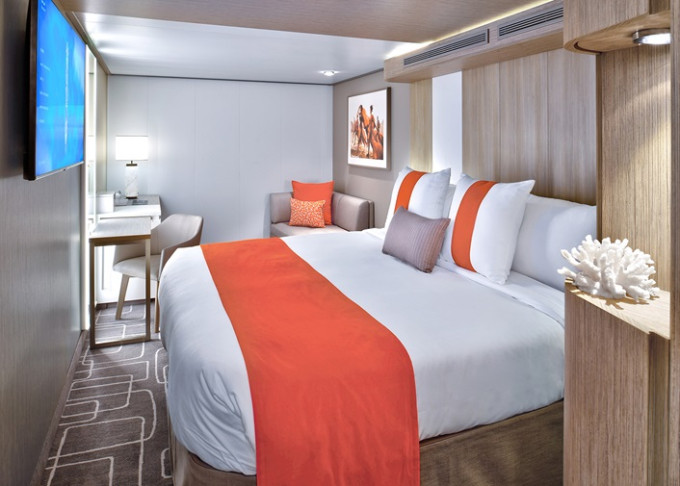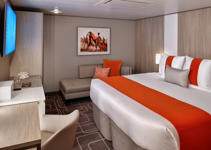 Základní vybavení všech kajut: koupelna s WC, fén, toaletní potřeby; lůžka, dostatek úložných prostor, toaletka se zrcadlem, individuálně nastavitelná klimatizace, TV, župany, trezor, minibar.