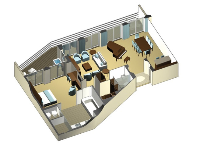 | RS - Royal Suite 55 m² + balkon s vířivkou 15 m² . Koupelna s vířivkou. 10/11. paluba. Max 4 osoby. Výhody Suite. | 371 519 Kč 185 759 Kč za osobu | ||