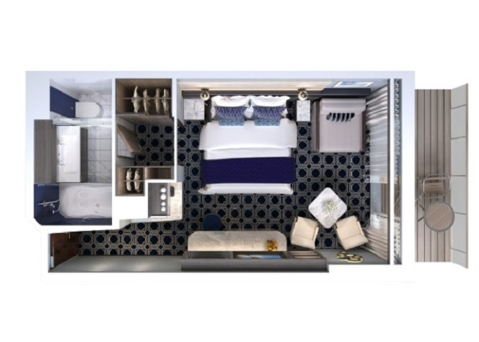 | B1 - Kajuta s balkonem Aft-facing od 20 m² / balkon od 4 m². 9. až 15. paluba - vzadu. Max 2-3 osoby. | 47 427 Kč 23 713 Kč za osobu |