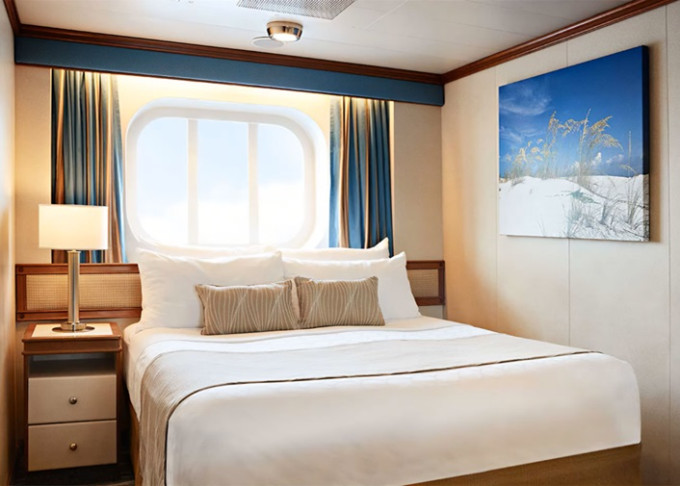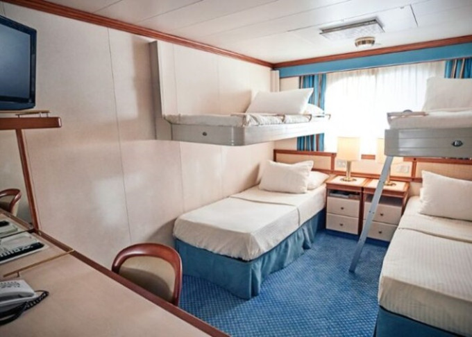| OV - Vnější kajuta / omezený výhled 16 m². Neotevíratelné okno s omezeným výhledem. Max 2-4 osoby (2 horní lôžka). | 72 465 Kč 36 232 Kč za osobu |
