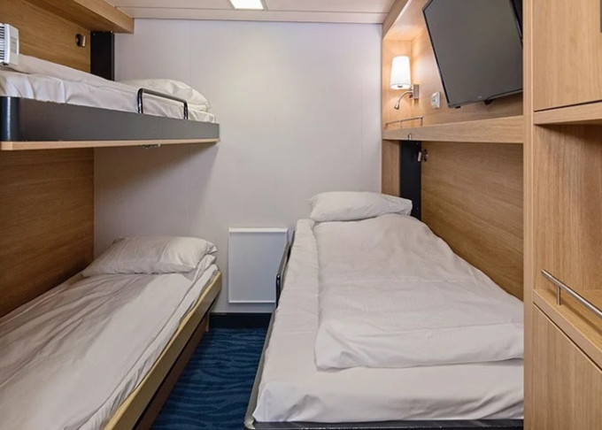 | J3 - Vnější kajuta Polar 8-11 m². Neotevíratelné okno s omezeným výhledem. Max 3 osoby. | 144 429 Kč 72 215 Kč za osobu | ||