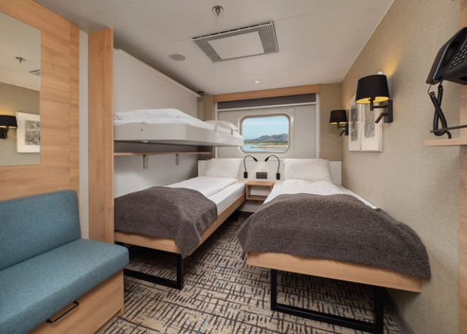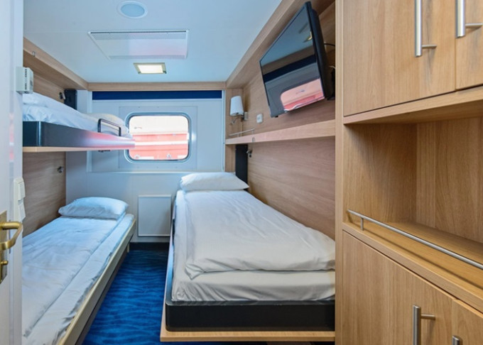 | L3 - Vnější kajuta Polar 8-12 m². Neotevíratelné obló s omezeným výhledem. Max 3 osoby. | 79 511 Kč 39 756 Kč za osobu | ||