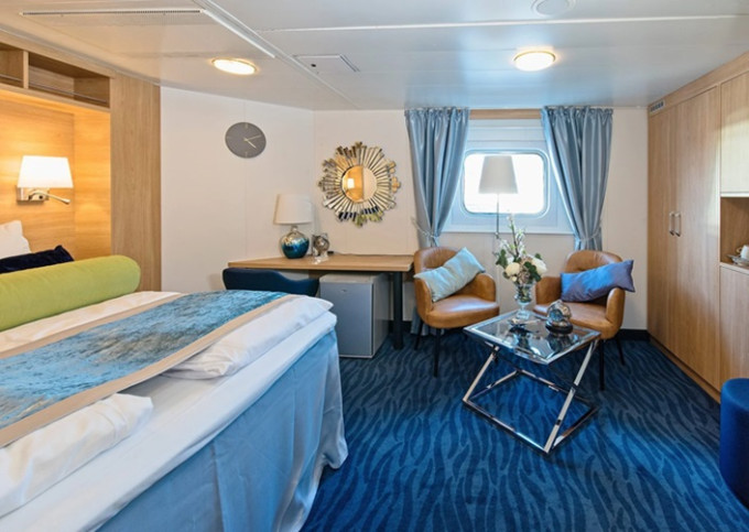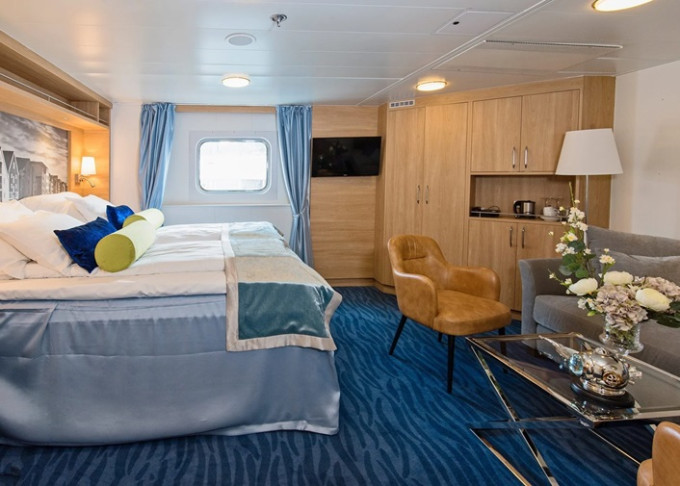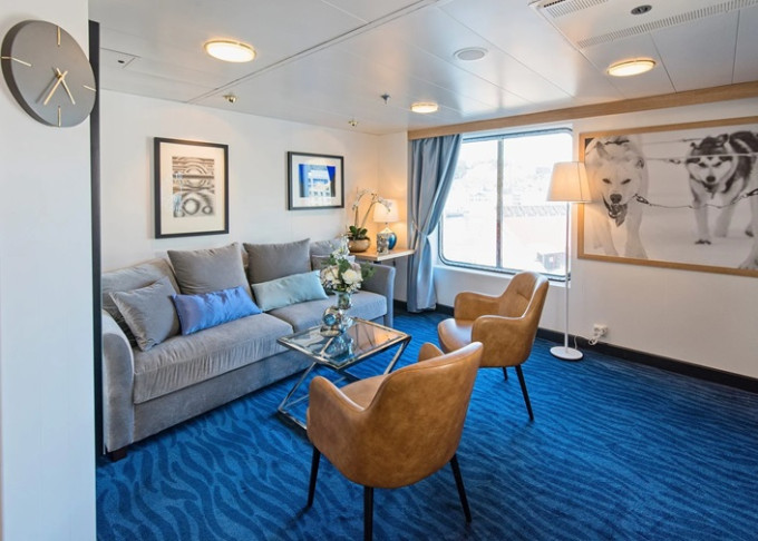 | M4 - Expedition Suite 28-30 m². Panoramatické neotevíratelné okno. Obývací část, Tv, WiFi, varná konvice. Max 4 osoby. | 216 494 Kč 108 247 Kč za osobu | ||