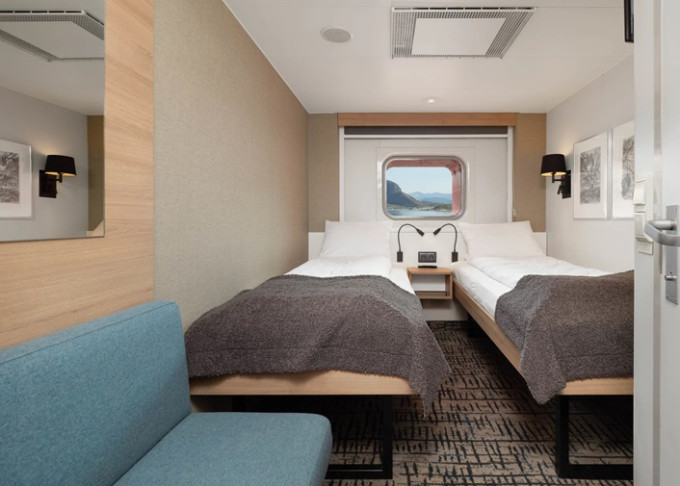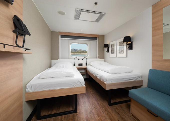 | J3 - Vnější kajuta Polar 8 -12 m². Neotevíratelné okno s omezeným výhledem. Max 3 osoby. | 83 759 Kč 41 880 Kč za osobu | ||