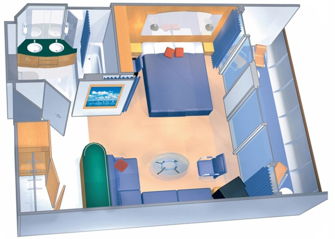 | 1K - Velká vnější kajuta Ultra Spacious 56 m². Neotevíratelné okno. 8. paluba. Max 8 osob. | 47 227 Kč 23 613 Kč za osobu |