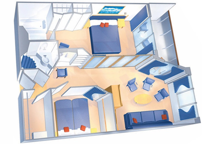 | RS - Royal Suite s balkonem 104 m² / balkon 14 m². Výhody Royal Suite Class. Koupelna s vířivkou. 8. paluba. Max 4 osoby. | 166 194 Kč 55 398 Kč za osobu | ||