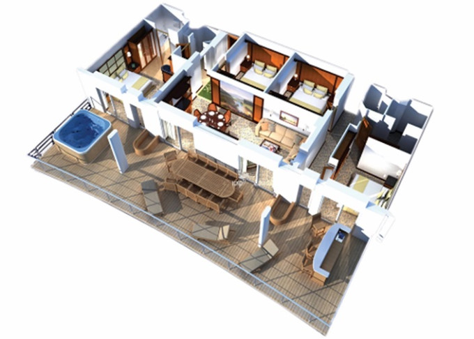 | VS - Villa Suite / 4 ložnice 112 m² / balkon s vířivkou 75 m². Výhody Royal Suite Class. 6. paluba. Max 14 osob. | 138 133 Kč 34 533 Kč za osobu |