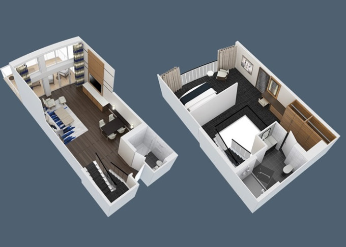 | SL - Sky Loft Suite s balkonem 69 m² / balkon 17 m². 2-podlažní apartmán. Výhody Royal Suite Class. 8/10. paluba. Max 4 osoby. | 121 841 Kč 30 460 Kč za osobu | ||