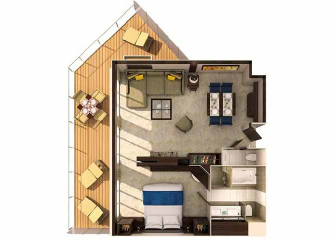 | SL - Sky Loft Suite s balkonem 69 m² / balkon 17 m². 2-podlažní apartmán. Výhody Royal Suite Class. 8/10. paluba. Max 4 osoby. | 99 252 Kč 99 252 Kč za osobu | ||