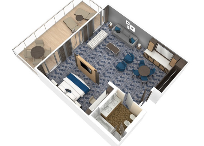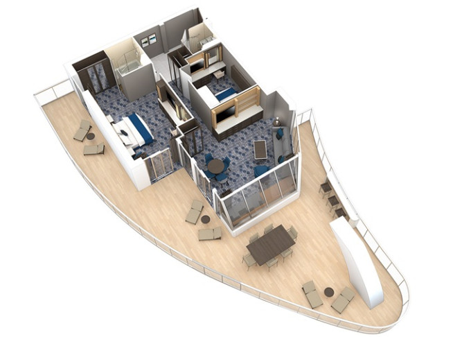 - Suite Neighborhood: exkluzivní část lodi je věnovaná náročným hostům, kteří zvolili ubytování ve suitách. K dispozici mají vlastní restauraci, opalovací tersu s jedinečným výhledem na oceán, soukromý salonek a mnohem více. Pro rodiny je k dispozici balíček Ultimate Family Suite.