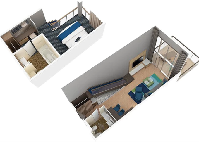 | L1 - Crown Loft Suite 51 m² / balkon 11 m². 2-podlažní apartmán. Výhody Royal Suite Class. 18. paluba. Max 4 osoby. | 141 781 Kč 70 890 Kč za osobu | ||