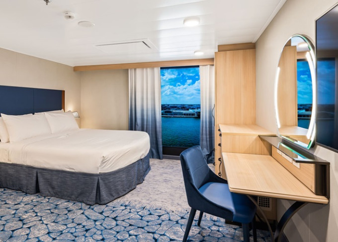 | 4U - Vnitřní kajuta s virtuálním balkonem 16 m². Obrazovka velikosti balkonových dveří s promítaným výhledem. 7. až 14. paluba. Max 4 osoby. | 31 385 Kč 15 692 Kč za osobu | ||