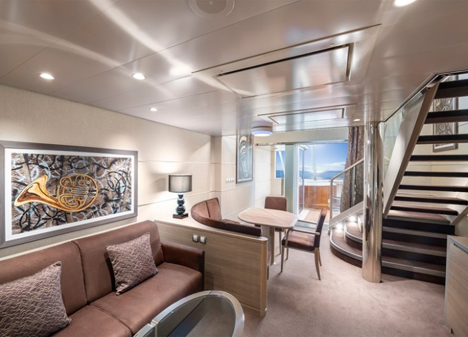 | YJD - Yacht Club Duplex Suite s vířivkou 59 m² + balkon 23 m². Vířivka. 2 podlaží, 2 šatníky, 2 koupelny (1 s vanou). 9. až 12. paluba. Cenový model MSC Yacht Club. Happy drink premium | 220 143 Kč 220 143 Kč za osobu |